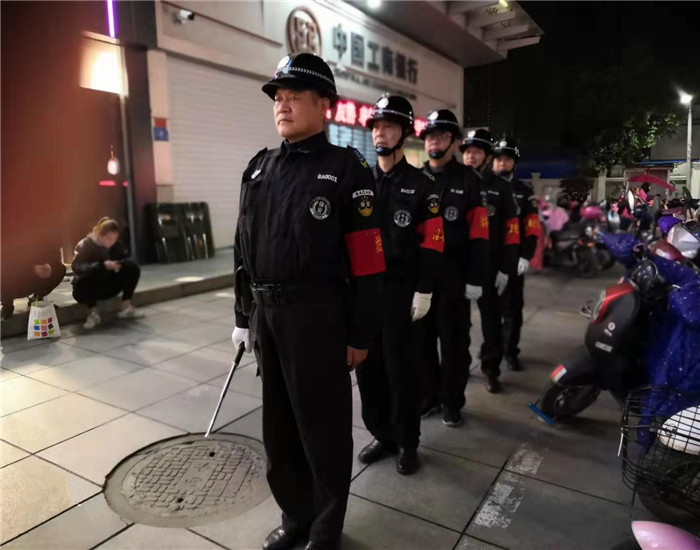 2019年10月16日樊城區(qū)漢江派出所民警和戎安保安服務(wù)有限公司保安隊員在樊城區(qū)公安分局內(nèi)保大隊陳鵬隊長組織帶領(lǐng)下,在樊城區(qū)人員密集場所開展義務(wù)巡邏。陳鵬隊長要求我們不要麻痹大意、掉以輕心,要堅守崗位,站好每一班崗。越是到后面的時刻,越要打起十二分精神,強(qiáng)化社會面治安防控,全力保障道路安全、暢通,讓人民群眾更有安全感、幸福感。